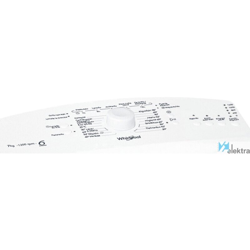 | Características principales | Las características de esta lavadora de libre instalación Whirlpool: color blanco. Capacidad espaciosa de 7kg. Nuestro electrodoméstico es la solución perfecta para cualquier espacio reducido. Rápida y eficiente velocidad de centrifugado de 1200 revoluciones por minuto. Tecnologia exclusiva 6th SENSE, que dinámicamente ajusta los parámetros según el tipo de carga, asegurando el máximo cuidado para tus prendas. |