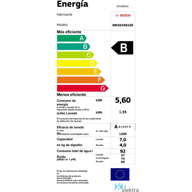 | Características principañes | Motor EcoSilence con 10 años de garantía. Capacidad de lavado/secado: 7 kg/4 kg. Velocidad máx. de centrifugado: 1400 r.p.m. Clase de eficiencia energética A dentro del rango A a G |
