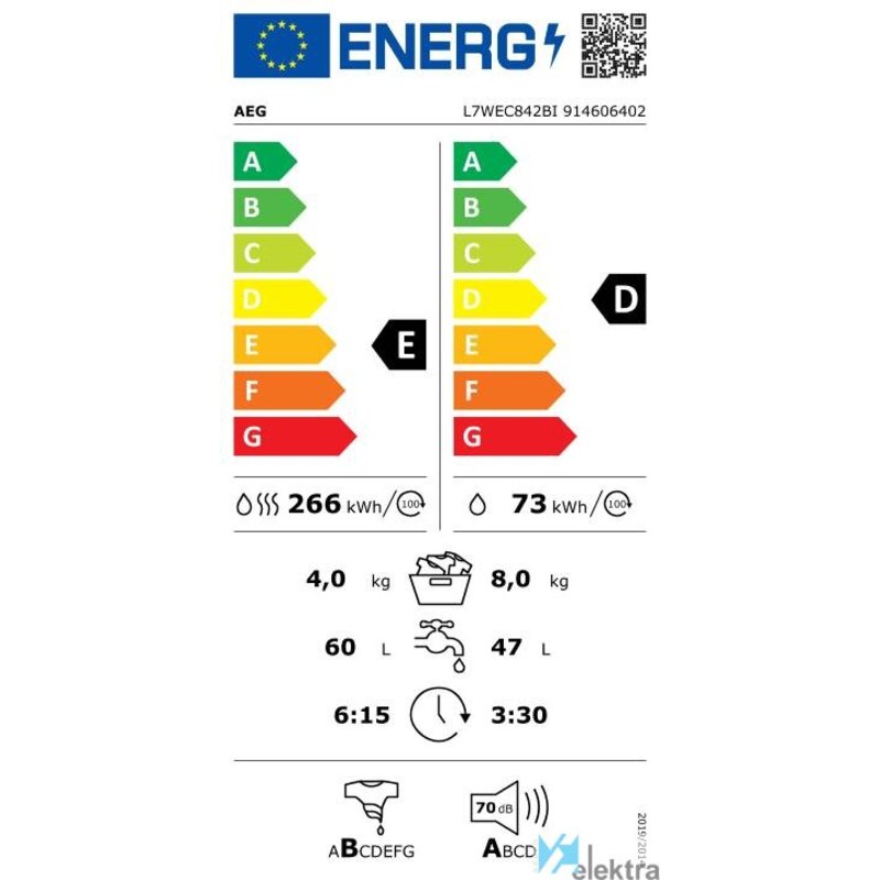 Lavadora-secadora AEG integrable ProSteam 8kg clase D L7WEC842BIRecipiente :