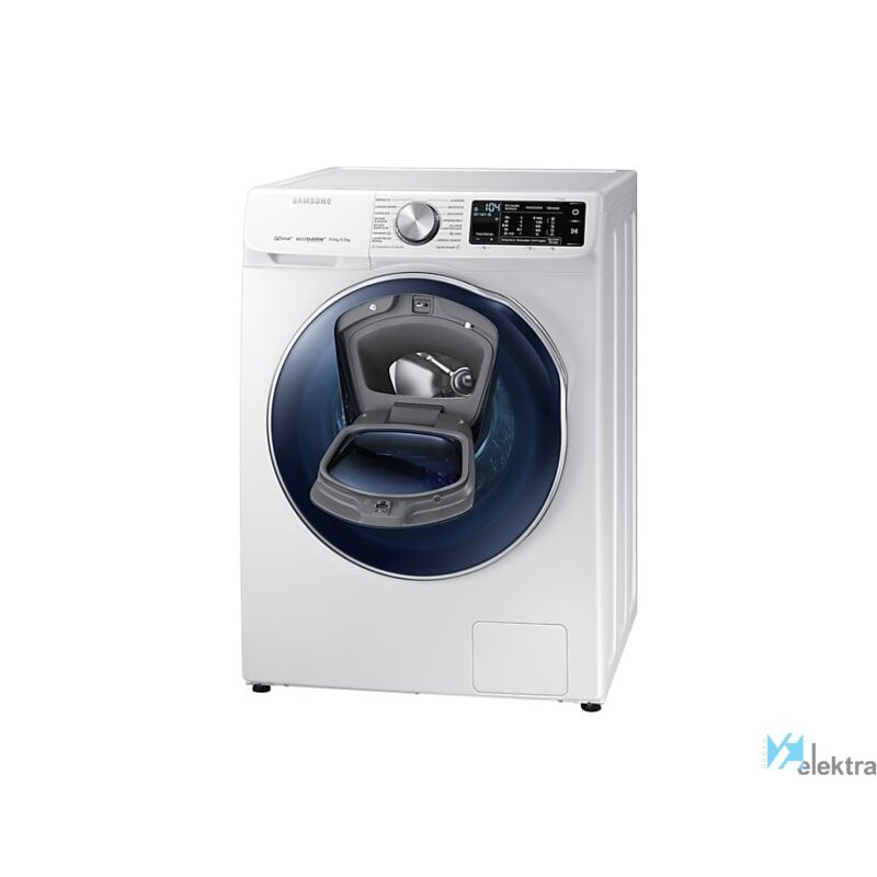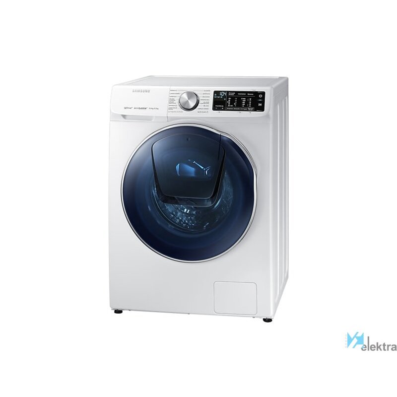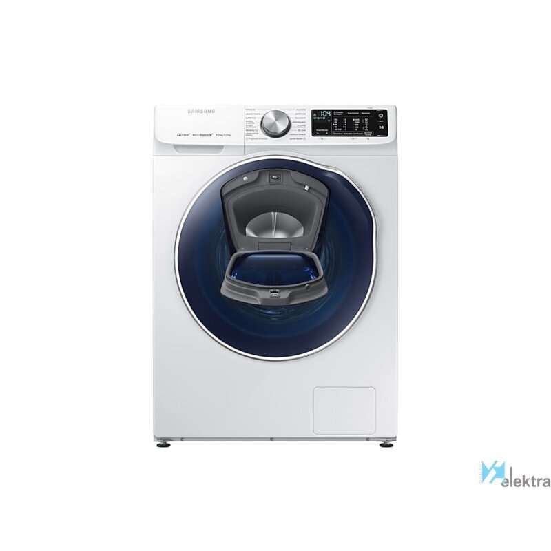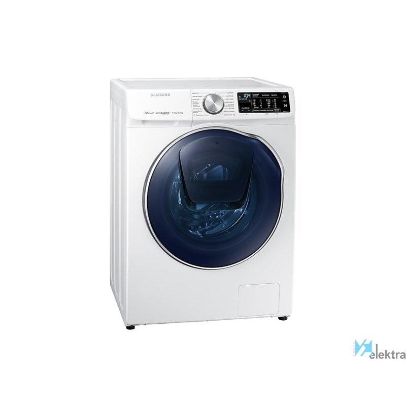 Samsung WD90N645OOW/EC. Tipo de carga: Carga frontal, Tipo de instalación: Independiente, Color del producto: Azul, Blanco. Capacidad de nominal (lavado y secado): 5 kg, Máxima velocidad de centrifugado: 1400 RPM, Clase de secado por giro: A. consumo de agua de lavado y secado: 126 L, Consumo de energia, lavado y secado: 6,12 kWh. Clase de eficiencia energética (antigua): A. Profundidad: 600 mm, Ancho: 600 mm, Altura: 850 mm