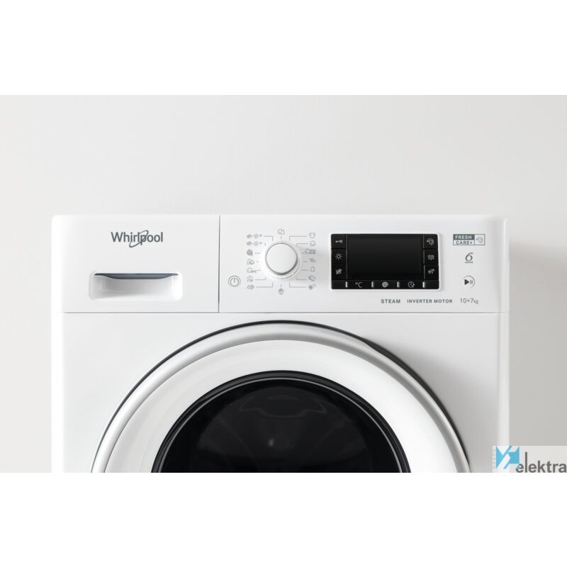 Whirlpool FWDD 1071682 WSV EU N. Tipo de carga: Carga frontal, Tipo de instalación: Independiente, Color del producto: Blanco. Capacidad de nominal (lavado y secado): 10 kg, Máxima velocidad de centrifugado: 1600 RPM, Clase de secado por giro: A. Longitud del cable: 1,2 m. Clase de eficiencia energética (lavado): D, Clase de eficiencia energética (lavado y secado): E, consumo de agua de lavado: 51 L. Profundidad: 605 mm, Ancho: 595 mm, Altura: 850 mm