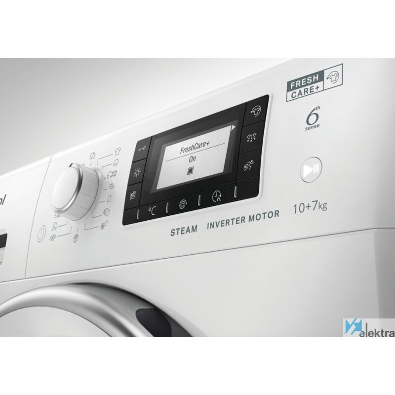 | Características principañes | Las características de esta lavasecadora de libre instalación Whirlpool: color blanco. Extraordinaria capacidad de lavado de 10kg. Gran capacidad de secado de 6kg. Exclusiva tecnología 6th SENSE que constantemente monitoriza la humedad en el tambor, protegiendo tu ropa y garantizando perfectos resultados de lavado y secado. Rápida y eficiente velocidad de centrifugado de 1600 revoluciones por minuto |