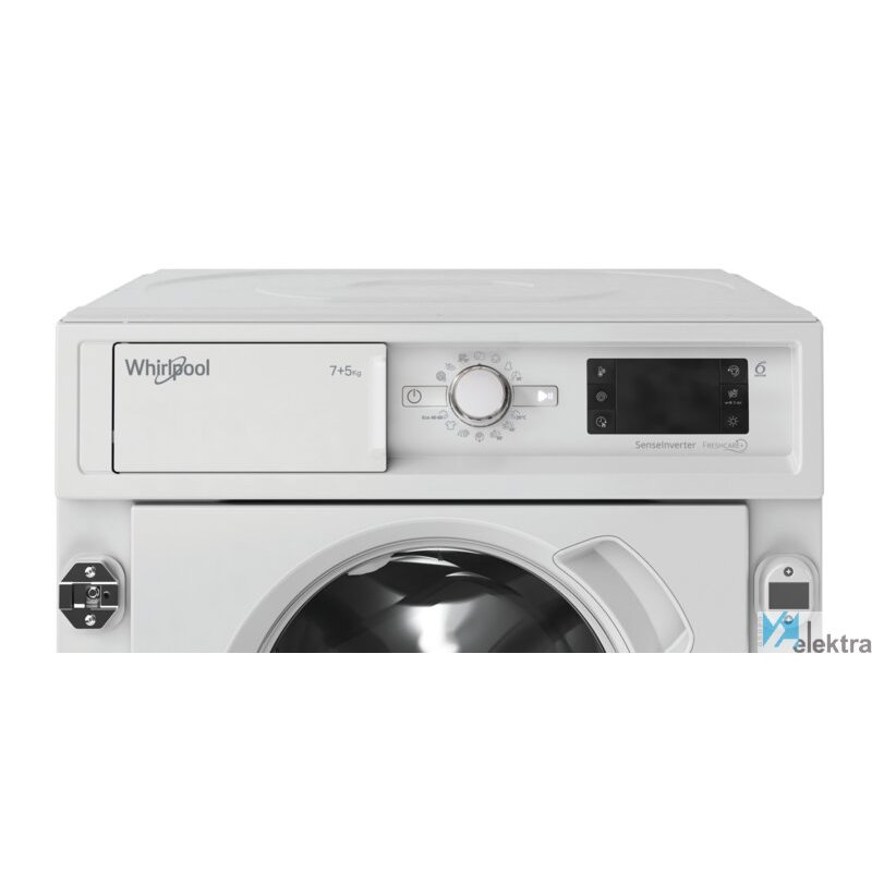 Whirlpool BI WDWG 751482 EU N. Tipo de carga: Carga frontal, Tipo de instalación: Integrado, Color del producto: Blanco. Capacidad de nominal (lavado y secado): 5 kg, Máxima velocidad de centrifugado: 1400 RPM, Clase de secado por giro: B. Longitud del cable: 1,2 m. Clase de eficiencia energética (lavado): D, Clase de eficiencia energética (lavado y secado): E, consumo de agua de lavado: 44 L. ...Recipiente :