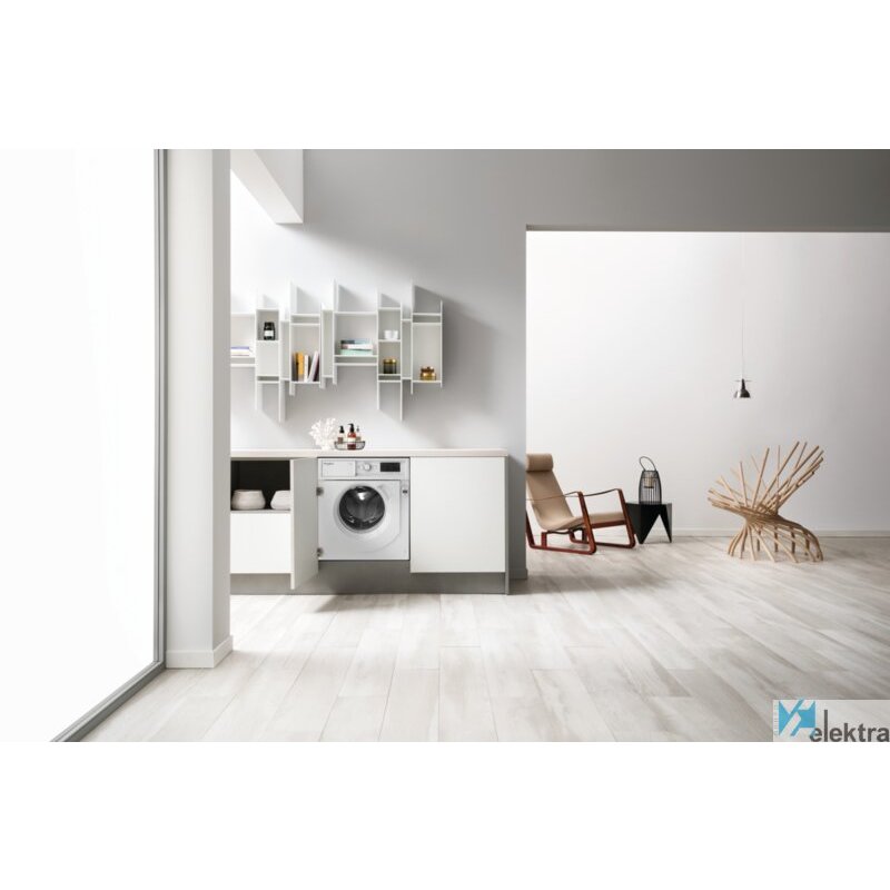 Whirlpool BI WDWG 751482 EU N. Tipo de carga: Carga frontal, Tipo de instalación: Integrado, Color del producto: Blanco. Capacidad de nominal (lavado y secado): 5 kg, Máxima velocidad de centrifugado: 1400 RPM, Clase de secado por giro: B. Longitud del cable: 1,2 m. Clase de eficiencia energética (lavado): D, Clase de eficiencia energética (lavado y secado): E, consumo de agua de lavado: 44 L. Profundidad: 545 mm, Ancho: 595 mm, Altura: 820 mm