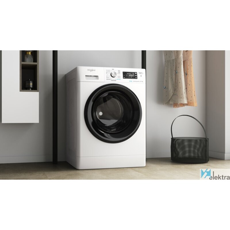 Whirlpool FFWDB 976258 BV SPT. Tipo de carga: Carga frontal, Tipo de instalación: Independiente, Color del producto: Blanco. Capacidad de nominal (lavado y secado): 7 kg, Máxima velocidad de centrifugado: 1551 RPM, Clase de secado por giro: A. Longitud del cable: 1,2 m. Clase de eficiencia energética (lavado): B, Clase de eficiencia energética (lavado y secado): E, consumo de agua de lavado: 50 L. Profundidad: 605 mm, Ancho: 595 mm, Altura: 850 mm