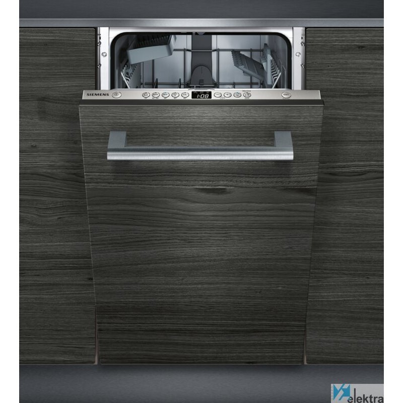 Siemens iQ300 SR635X04IE. Tipo de instalación: Completamente integrado, Talla del producto: Estrecho (45 cm), Panel de control: Acero inoxidable. Número de cubiertos: 9 cubiertos, Nivel de ruido: 46 dB, Programas de lavado: 60min 65°C, Auto 45-65 °C, Eco 50 °C, Vidrio/Delicado, Intensive 70°C. Ajuste de patas: 6 cm. Consumo de agua por ciclo de lavado: 8,5 L, Clase de eficiencia energética (antigua): A++, Consumo de energía por ciclo: 0,7 kWh. Ancho: 448 mm, Profundidad: 550 mm, Altura: 815 mm