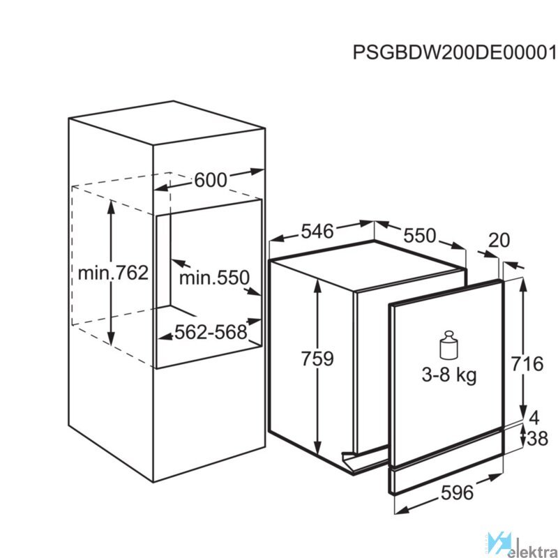 Lavavajillas AEG integrable de 55 cm para 12 cubiertos de Clase D FSE63307PRecipiente :