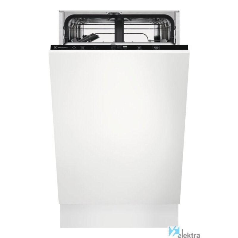 Electrolux EEA22101L. Tipo de instalación: Semi integrado, Talla del producto: Estrecho (45 cm), Longitud del cable: 1,5 m. Número de cubiertos: 9 cubiertos, Clase de emisión de ruido: C, Nivel de ruido: 47 dB. Clase de eficiencia de energía: F, Consumo de agua por ciclo de lavado: 9,9 L, Consumo de energía por 100 ciclos: 78 kWh. Ancho: 450 mm, Profundidad: 550 mm, Altura: 900 mmRecipiente :