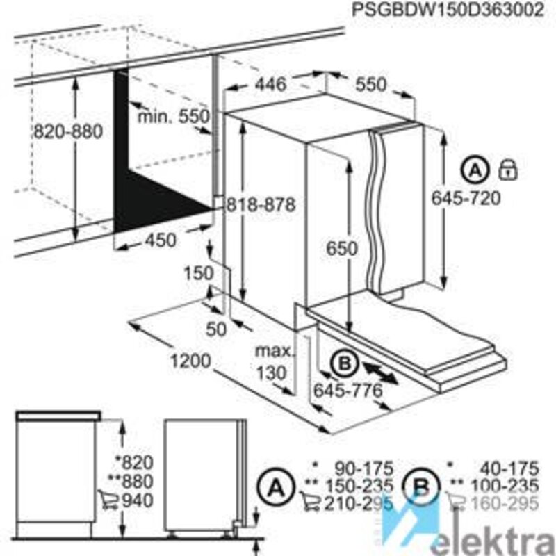 Electrolux EEA22101L. Tipo de instalación: Semi integrado, Talla del producto: Estrecho (45 cm), Longitud del cable: 1,5 m. Número de cubiertos: 9 cubiertos, Clase de emisión de ruido: C, Nivel de ruido: 47 dB. Clase de eficiencia de energía: F, Consumo de agua por ciclo de lavado: 9,9 L, Consumo de energía por 100 ciclos: 78 kWh. Ancho: 450 mm, Profundidad: 550 mm, Altura: 900 mm
