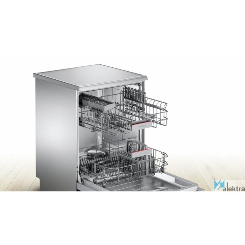 Bosch Serie 6 SMS68II07E. Tipo de instalación: Independiente, Talla del producto: Tamaño completo (60 cm), Color de la puerta: Acero inoxidable. Número de cubiertos: 13 cubiertos, Clase de emisión de ruido: C, Nivel de ruido: 46 dB. Ajuste de patas: 2 cm. Clase de eficiencia de energía: D, Consumo de agua por ciclo de lavado: 9,5 L, Consumo de energía por 100 ciclos: 84 kWh. Ancho: 600 mm, Alt ...Recipiente :