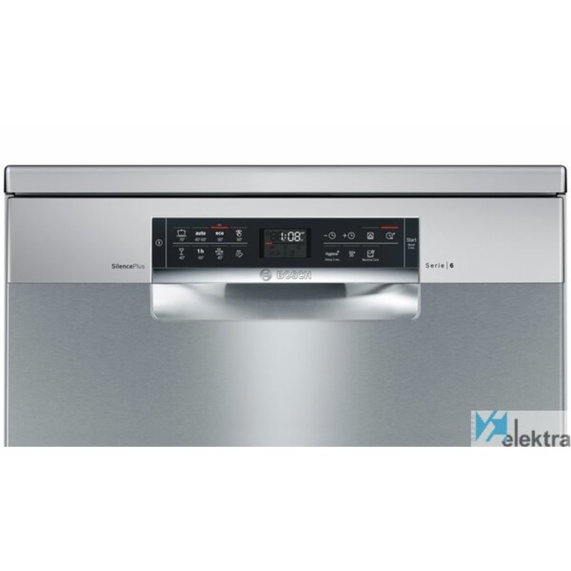 Bosch Serie 6 SMS68II07E. Tipo de instalación: Independiente, Talla del producto: Tamaño completo (60 cm), Color de la puerta: Acero inoxidable. Número de cubiertos: 13 cubiertos, Clase de emisión de ruido: C, Nivel de ruido: 46 dB. Ajuste de patas: 2 cm. Clase de eficiencia de energía: D, Consumo de agua por ciclo de lavado: 9,5 L, Consumo de energía por 100 ciclos: 84 kWh. Ancho: 600 mm, Altura: 845 mm, Peso: 52 kg