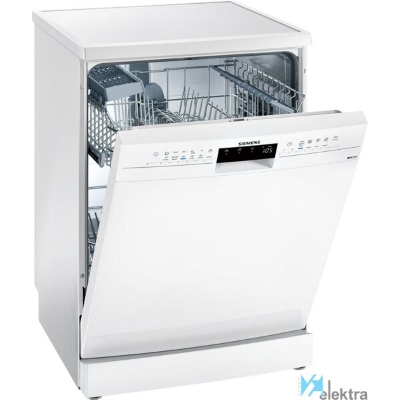 Siemens iQ300 SN236W01IE. Tipo de instalación: Independiente, Talla del producto: Tamaño completo (60 cm), Color de la puerta: Blanco. Número de cubiertos: 13 cubiertos, Nivel de ruido: 44 dB, Programas de lavado: 60min 65°C, Auto 45-65 °C, Eco, Vidrio/Delicado, Intensivo, Prelavado. Ajuste de patas: 2 cm. Clase de eficiencia de energía: D, Consumo de agua por ciclo de lavado: 9,5 L, Consumo de energía por 100 ciclos: 84 kWh. Ancho: 600 mm, Profundidad: 600 mm, Altura: 845 mm