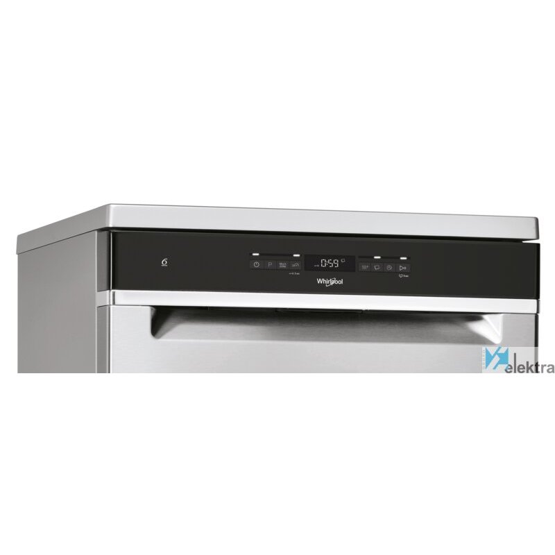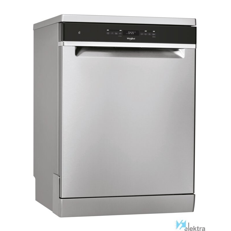Whirlpool WFO 3T142 X. Tipo de instalación: Independiente, Talla del producto: Tamaño completo (60 cm), Color de la puerta: Acero inoxidable. Número de cubiertos: 14 cubiertos, Clase de emisión de ruido: B, Nivel de ruido: 42 dB. Clase de eficiencia de energía: C, Consumo de agua por ciclo de lavado: 9,5 L, Consumo de energía por 100 ciclos: 75 kWh. Ancho: 600 mm, Profundidad: 590 mm, Altura: 850 mm. Peso del paquete: 49 kg