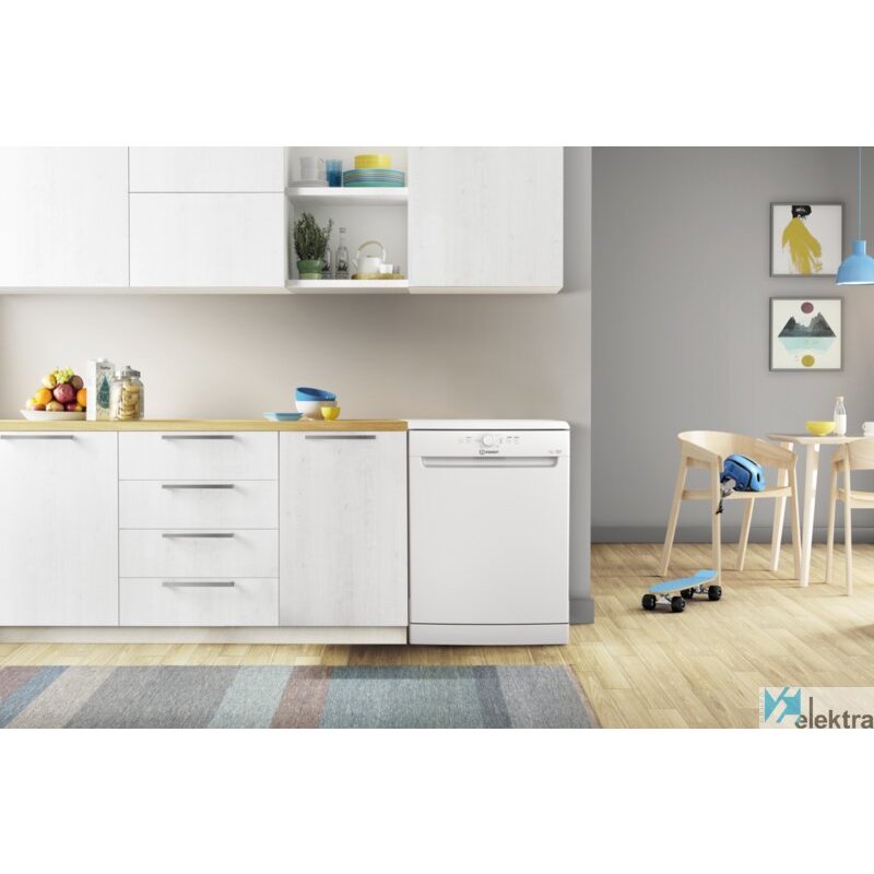 Indesit D2F HK26. Tipo de instalación: Independiente, Talla del producto: Tamaño completo (60 cm), Color de la puerta: Blanco. Número de cubiertos: 14 cubiertos, Clase de emisión de ruido: C, Nivel de ruido: 46 dB. Clase de eficiencia de energía: E, Consumo de agua por ciclo de lavado: 9,5 L, Consumo de energía por 100 ciclos: 95 kWh. Ancho: 600 mm, Profundidad: 590 mm, Altura: 850 mm. Ancho del paquete: 625 mm, Profundidad del paquete: 675 mm, Altura del paquete: 910 mm