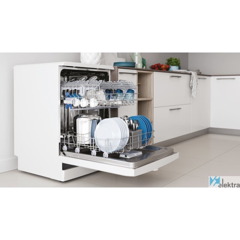 Indesit D2F HK26. Tipo de instalación: Independiente, Talla del producto: Tamaño completo (60 cm), Color de la puerta: Blanco. Número de cubiertos: 14 cubiertos, Clase de emisión de ruido: C, Nivel de ruido: 46 dB. Clase de eficiencia de energía: E, Consumo de agua por ciclo de lavado: 9,5 L, Consumo de energía por 100 ciclos: 95 kWh. Ancho: 600 mm, Profundidad: 590 mm, Altura: 850 mm. Ancho d ...Recipiente :