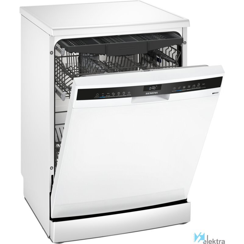 Siemens iQ300 SN23HW02ME. Tipo de instalación: Independiente, Talla del producto: Tamaño completo (60 cm), Color de la puerta: Blanco. Número de cubiertos: 14 cubiertos, Clase de emisión de ruido: B, Nivel de ruido: 42 dB. Aplicaciones de control compatibles: Siemens Home Connect. Clase de eficiencia de energía: D, Consumo de agua por ciclo de lavado: 9 L, Consumo de energía por 100 ciclos: 85 kWh. Ancho: 600 mm, Profundidad: 600 mm, Altura: 845 mm