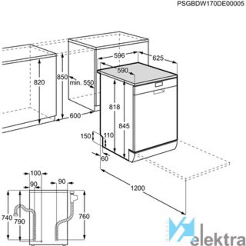 Electrolux ESF9515LOW. Tipo de instalación: Independiente, Talla del producto: Tamaño completo (60 cm), Color de la puerta: Blanco. Número de cubiertos: 14 cubiertos, Clase de emisión de ruido: C, Nivel de ruido: 46 dB. Clase de eficiencia de energía: D, Consumo de agua por ciclo de lavado: 10,5 L, Consumo de energía por 100 ciclos: 85 kWh. Ancho: 596 mm, Profundidad: 625 mm, Altura: 845 mmRecipiente :