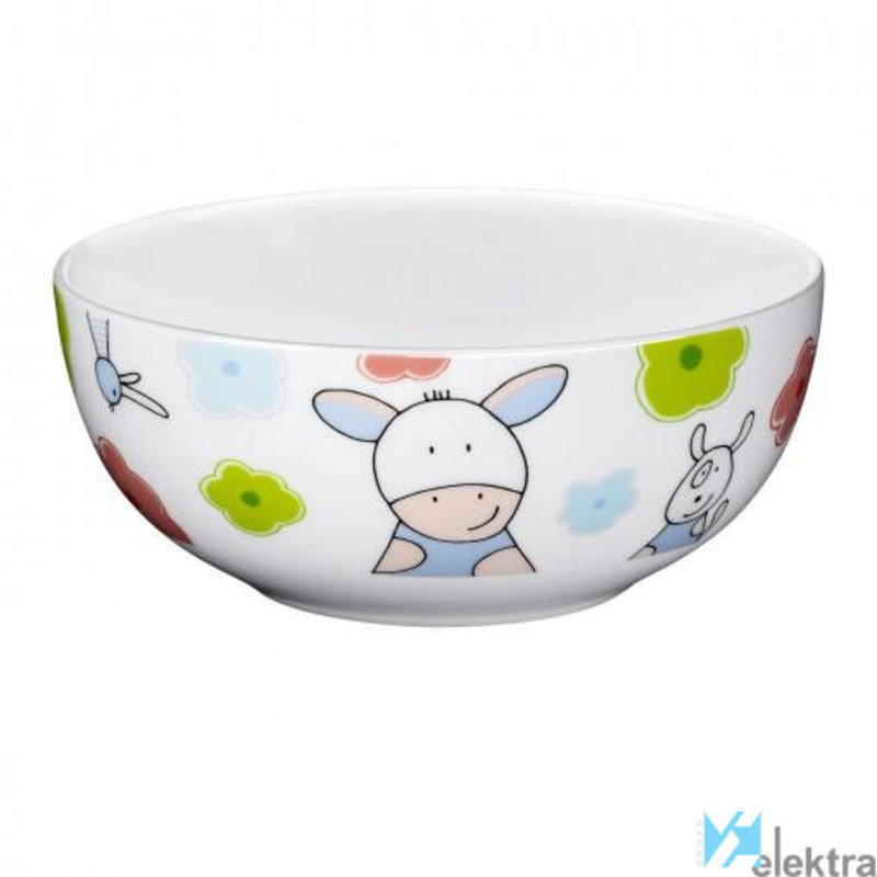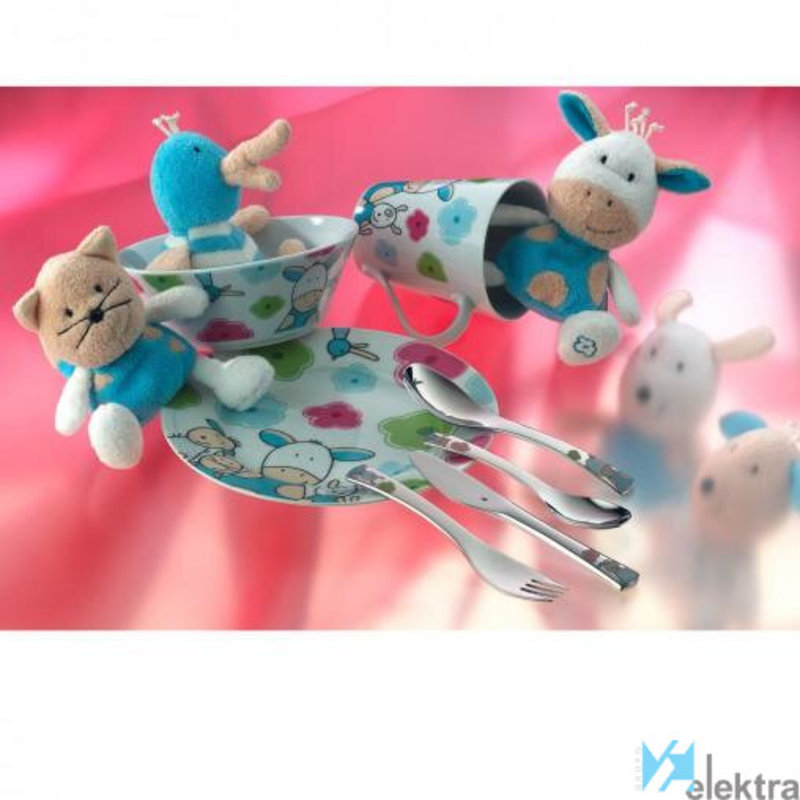 WMF 12.9445.9964. Tipo de producto: Conjunto de cubiertos infantiles, Color del producto: Acero inoxidable, Blanco, Material: Porcelana, Acero inoxidable. Longitud de tenedor para niños: 16,5 cm, Longitud de cuchillo para niños: 18,5 cm, Longitud de cuchara para niños: 16,5 cmRecipiente :
