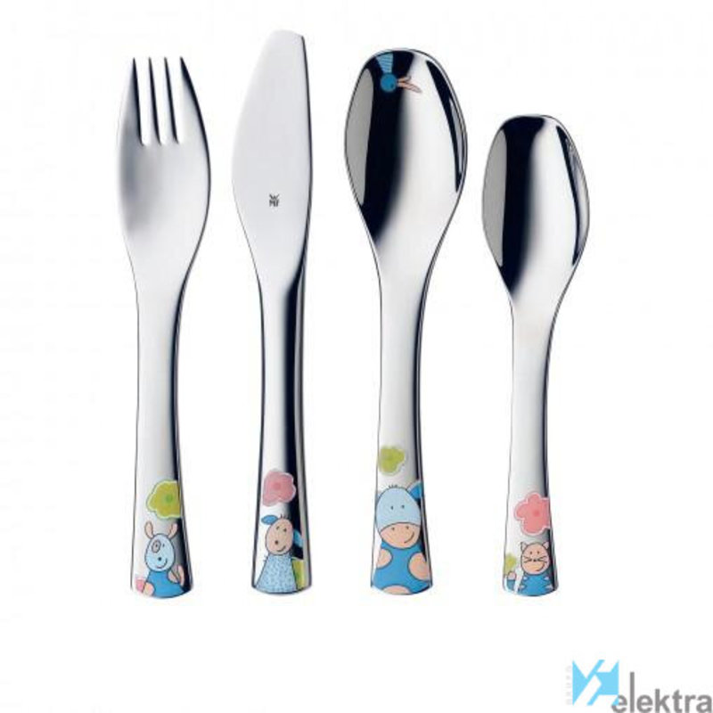 WMF 12.9445.9964. Tipo de producto: Conjunto de cubiertos infantiles, Color del producto: Acero inoxidable, Blanco, Material: Porcelana, Acero inoxidable. Longitud de tenedor para niños: 16,5 cm, Longitud de cuchillo para niños: 18,5 cm, Longitud de cuchara para niños: 16,5 cm