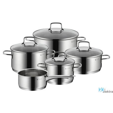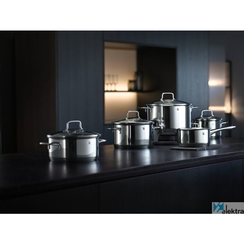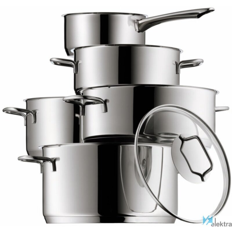 WMF Astoria 0780556040. Tipo: Juego de cazuelas y cazo, Color del producto: Acero inoxidable, Material: Acero inoxidable. Diámetro de cacerola: 16 cm, Diámetro de cacerola 2: 20 cm, Diámetro de cacerola 3: 24 cm. Volumen del paquete: 49376 cm³. Número de productos incluidos: 9 pieza(s), Número de cacerolas: 5 pieza(s). Cantidad por contenedor (20ft): 600 pieza(s), Cantidad por contenedor (40ft): 1256 pieza(s)