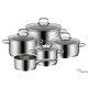 WMF Astoria 0780556040. Tipo: Juego de cazuelas y cazo, Color del producto: Acero inoxidable, Material: Acero inoxidable. Diámetro de cacerola: 16 cm, Diámetro de cacerola 2: 20 cm, Diámetro de cacerola 3: 24 cm. Volumen del paquete: 49376 cm³. Número de productos incluidos: 9 pieza(s), Número de cacerolas: 5 pieza(s). Cantidad por contenedor (20ft): 600 pieza(s), Cantidad por contenedor (40ft ...Recipiente :