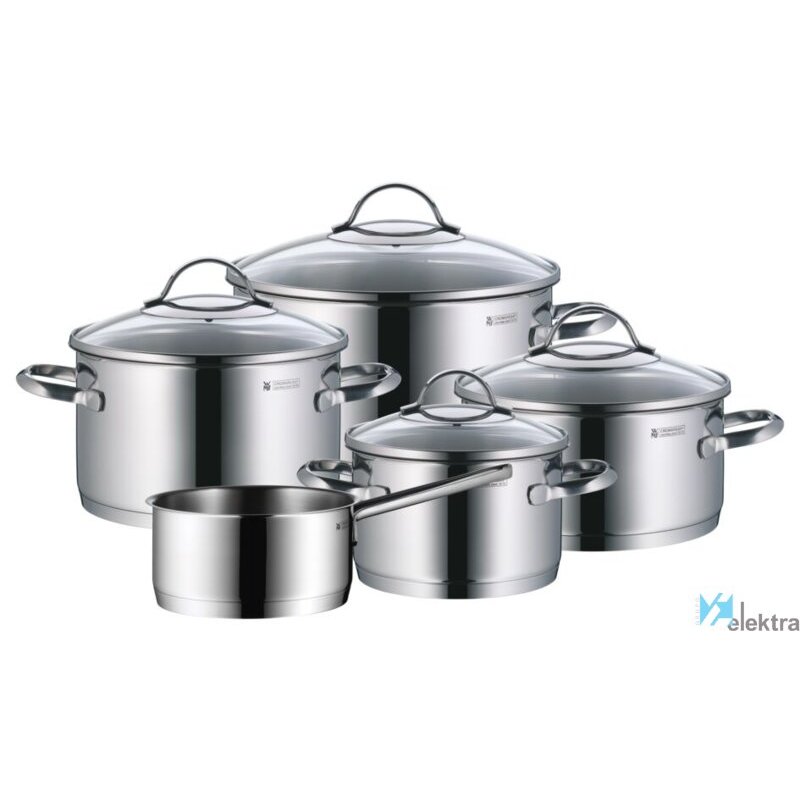 WMF Provence Plus 0721556380. Tipo: Juego de cazuelas y cazo, Color del producto: Acero inoxidable, Material: Acero inoxidable. Diámetro de cacerola: 16 cm, Diámetro de cacerola 2: 20 cm, Diámetro de cacerola 3: 24 cm. Volumen del paquete: 49376 cm³. Número de productos incluidos: 9 pieza(s), Número de cacerolas: 5 pieza(s). Cantidad por contenedor (20ft): 600 pieza(s), Cantidad por contenedor (40ft): 1256 pieza(s)