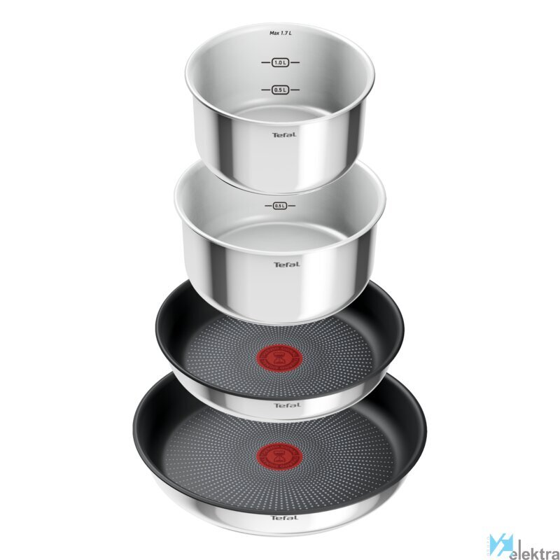 Tefal Ingenio L8971S04. Tipo: Batería de cocina, Color del producto: Acero inoxidable, Material: Acero inoxidable. Diámetro de cacerola: 16 cm, Diámetro de cacerola 2: 18 cm, Diámetro de sartén: 22 cm. Peso del paquete: 4,1 kg. Número de productos incluidos: 10 pieza(s), Número de cacerolas: 2 pieza(s), Número de sartenes: 2 pieza(s). Cantidad por contenedor (20ft): 1400 pieza(s), Cantidad por ...Recipiente :
