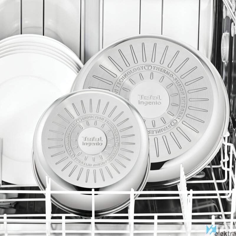 Tefal Ingenio L8971S04. Tipo: Batería de cocina, Color del producto: Acero inoxidable, Material: Acero inoxidable. Diámetro de cacerola: 16 cm, Diámetro de cacerola 2: 18 cm, Diámetro de sartén: 22 cm. Peso del paquete: 4,1 kg. Número de productos incluidos: 10 pieza(s), Número de cacerolas: 2 pieza(s), Número de sartenes: 2 pieza(s). Cantidad por contenedor (20ft): 1400 pieza(s), Cantidad por contenedor (40ft): 2905 pieza(s), Cantidad por capa de palet: 6 pieza(s)