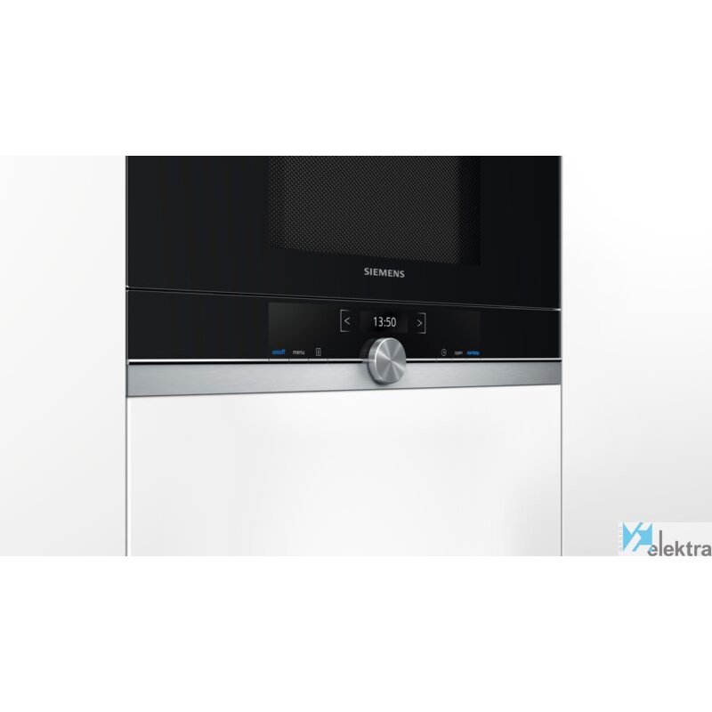 Siemens BF634RGS1. Tipo de instalación: Integrado, Capacidad interior: 21 L, Potencia del microondas: 900 W, Pantalla incorporada, Tipo de visualizador: TFT, Tipo de control: Tocar, Color del producto: Negro, Plata