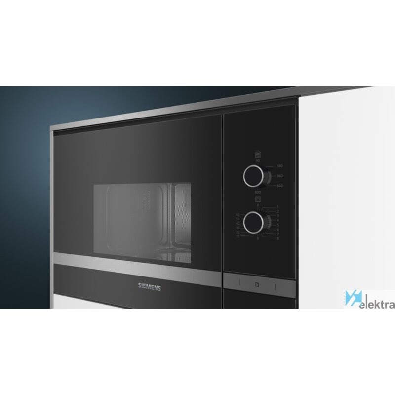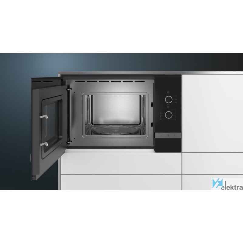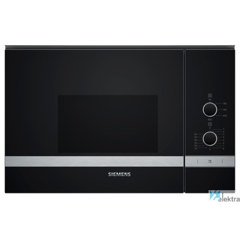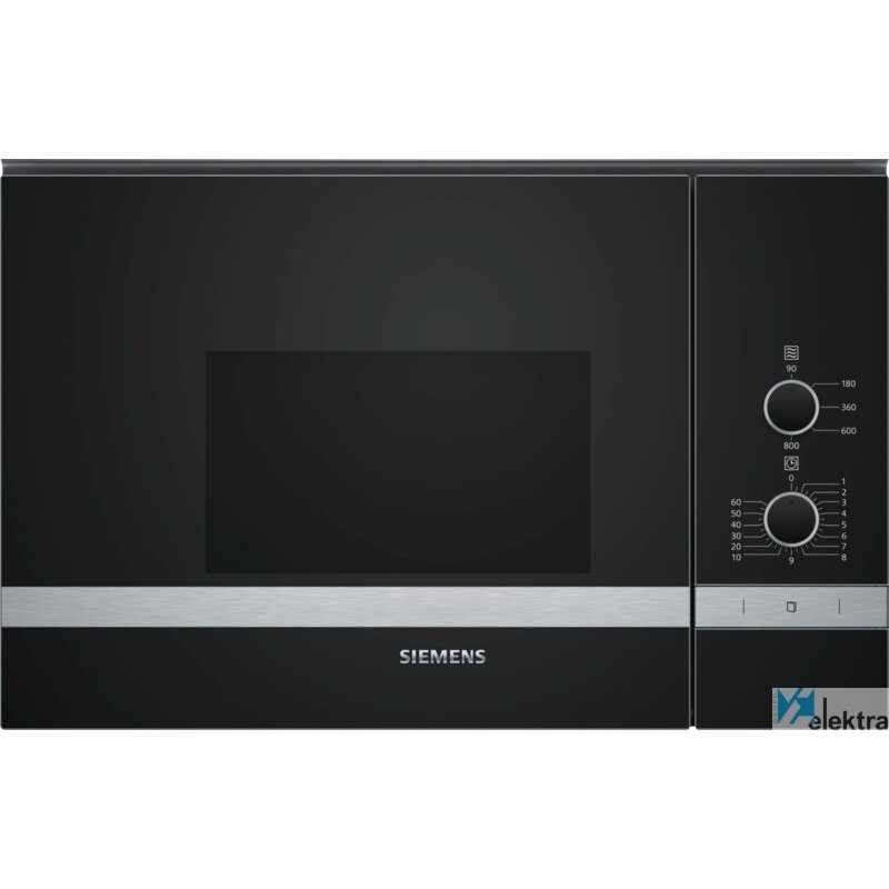 Siemens iQ300 BF520LMR0. Tipo de instalación: Integrado, Tipo de producto: Solo microondas, Capacidad interior: 20 L, Potencia del microondas: 800 W, Pantalla incorporada, Tipo de control: Botón, Giratorio, Color del producto: Negro, Acero inoxidableRecipiente :
