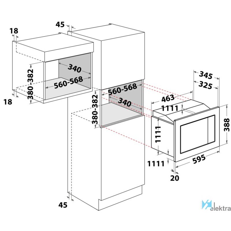 Indesit MWI 122.2 X. Tipo de instalación: Integrado, Tipo de producto: Microondas con grill, Capacidad interior: 20 L, Potencia del microondas: 800 W, Pantalla incorporada, Tipo de control: Botones, Giratorio, Color del producto: Acero inoxidable