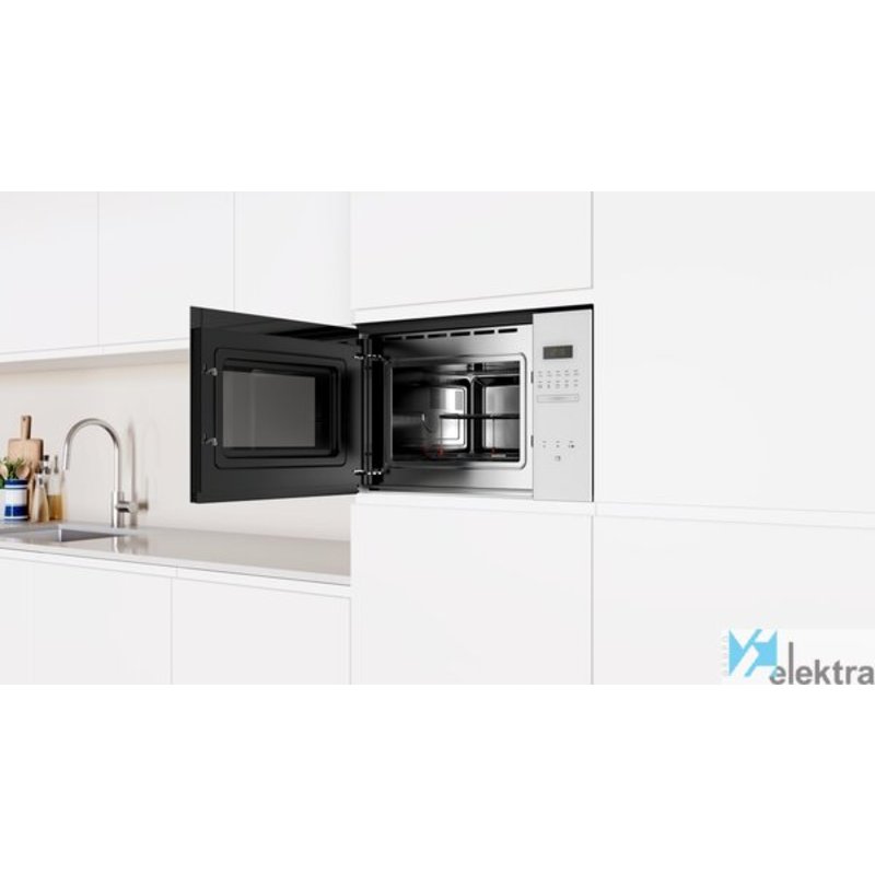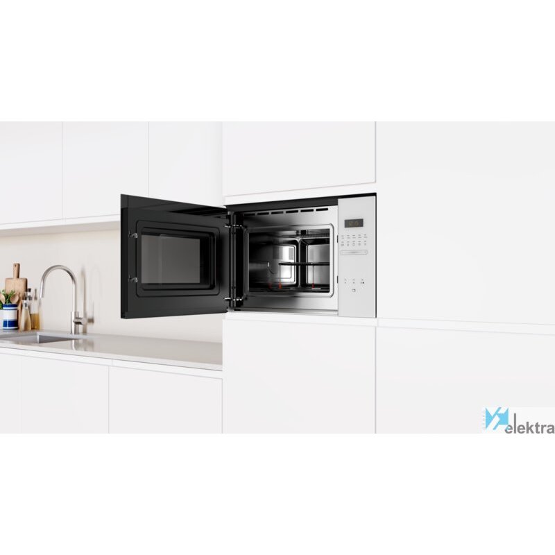 | Otras características | Diseño Serie Cristal; Microondas sin marco; Instalación en columna de 60 cm de ancho; Apertura lateral izquierda; Electrónico; Control Deslizante totalmente integrado en el cristal: diseño; profesional y fácil limpieza; Capacidad: 25 litros.; Plato giratorio de 31.5 cm de diámetro.; Asistente de limpieza Aqualisis; Reloj electrónico con programación de paro de cocción; Potencia máxima: 900 W.; Potencia del grill: 1.200 W.; Funcionamiento combinado microondas + grill; 5 niveles de potencia de microondas; 8 programas automáticos de cocción y descongelación por peso; 1 programa favorito para memorizar ajustes de tiempo y; potencias preferidos; Interior de acero inoxidable; Iluminación interior LED; Accesorios incluidos: parrilla para grill, plato giratorio. |
