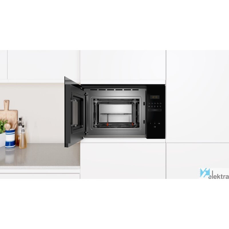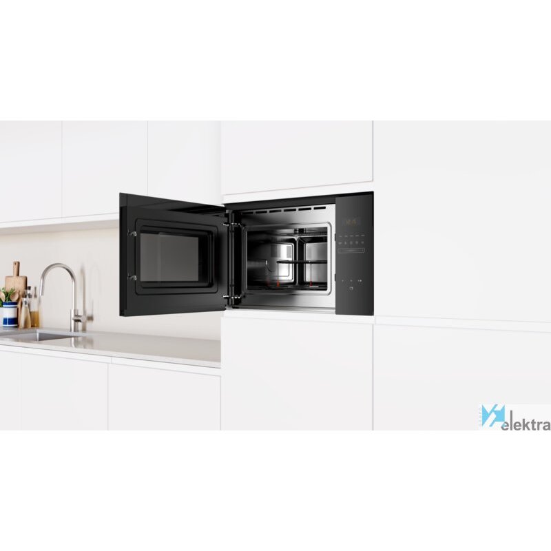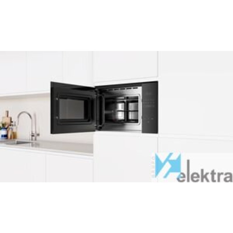 | Otras características | Diseño Serie Cristal; Microondas sin marco; Instalación en columna de 60 cm de ancho; Apertura lateral izquierda; Electrónico; Control Deslizante totalmente integrado en el cristal: diseño; profesional y fácil limpieza; Capacidad: 25 litros.; Plato giratorio de 31.5 cm de diámetro.; Asistente de limpieza Aqualisis; Reloj electrónico con programación de paro de cocción; Potencia máxima: 900 W.; Potencia del grill: 1.200 W.; Funcionamiento combinado microondas + grill; 5 niveles de potencia de microondas; 8 programas automáticos de cocción y descongelación por peso; 1 programa favorito para memorizar ajustes de tiempo y; potencias preferidos; Interior de acero inoxidable; Iluminación interior LED; Accesorios incluidos: parrilla para grill, plato giratorio. |