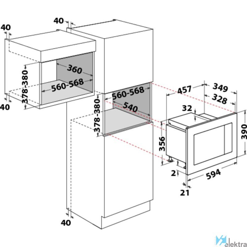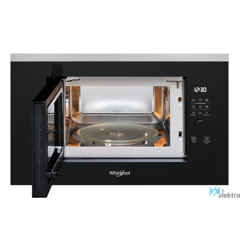 Whirlpool WMF201G. Tipo de instalación: Integrado, Tipo de producto: Microondas con grill, Capacidad interior: 20 L, Potencia del microondas: 800 W, Pantalla incorporada, Tipo de control: Giratorio, Tocar, Color del producto: Negro, Acero inoxidableRecipiente :