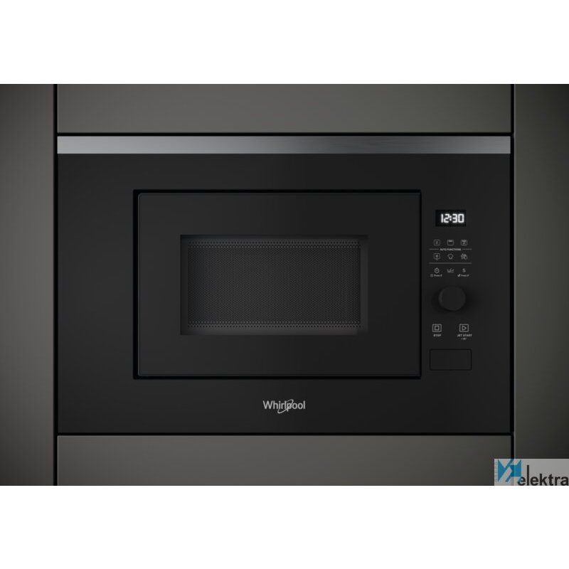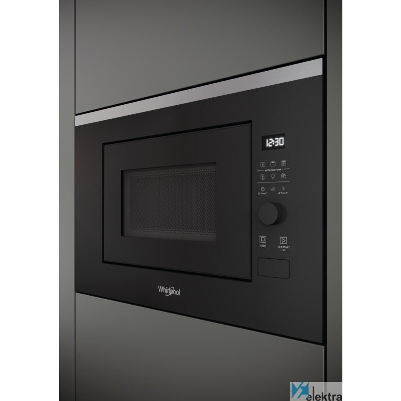 Whirlpool WMF201G. Tipo de instalación: Integrado, Tipo de producto: Microondas con grill, Capacidad interior: 20 L, Potencia del microondas: 800 W, Pantalla incorporada, Tipo de control: Giratorio, Tocar, Color del producto: Negro, Acero inoxidable