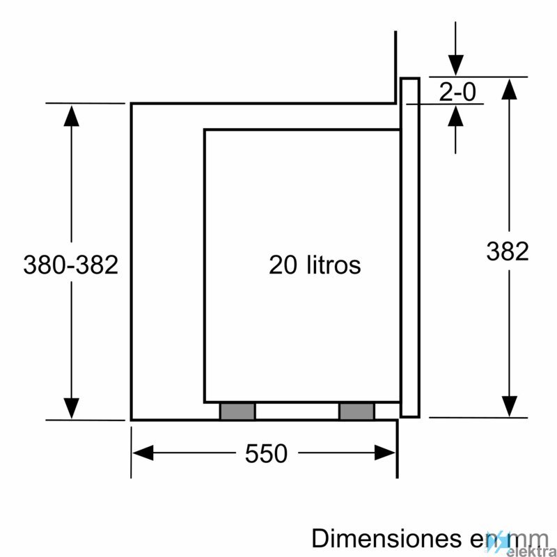 | Otras características | Diseño Serie Cristal; Microondas sin marco; Instalación en columna de 60 cm de ancho, instalación en mueble alto de 60 cm de ancho; Apertura lateral izquierda; Electrónico; Control Deslizante totalmente integrado en el cristal: diseño profesional y fácil limpieza; Capacidad: 20 litros; Plato giratorio de 25.5 cm de diámetro; Asistente de limpieza Aqualisis; Reloj electrónico con programación de paro de cocción; Potencia máxima: 800 W; Potencia del grill: 1.000 W; Funcionamiento combinado microondas + grill; 5 niveles de potencia de microondas; 8 programas automáticos de cocción y descongelación por peso; 1 programa favorito para memorizar ajustes de tiempo y potencias preferidos; Interior de acero inoxidable; Iluminación interior LED; Accesorios incluidos: parrilla para grill, plato giratorio. |