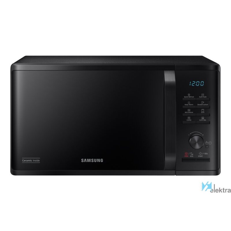Samsung Microondas con Grill 23L 800W Clase X Negro MG23K3515AK/E1. Tipo de instalación: Encimera, Tipo de producto: Microondas con grill, Capacidad interior: 23 L, Potencia del microondas: 800 W, Pantalla incorporada, Tipo de visualizador: LED, Tipo de control: Botones, Giratorio, Color del producto: Negro