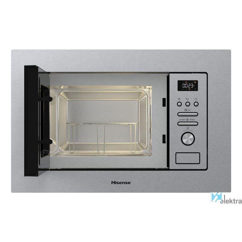 Hisense BIM320G41X. Tipo de instalación: Integrado, Tipo de producto: Microondas combinado, Capacidad interior: 20 L, Potencia del microondas: 800 W, Pantalla incorporada, Tipo de control: Botones, Giratorio, Color del producto: Acero inoxidableRecipiente :