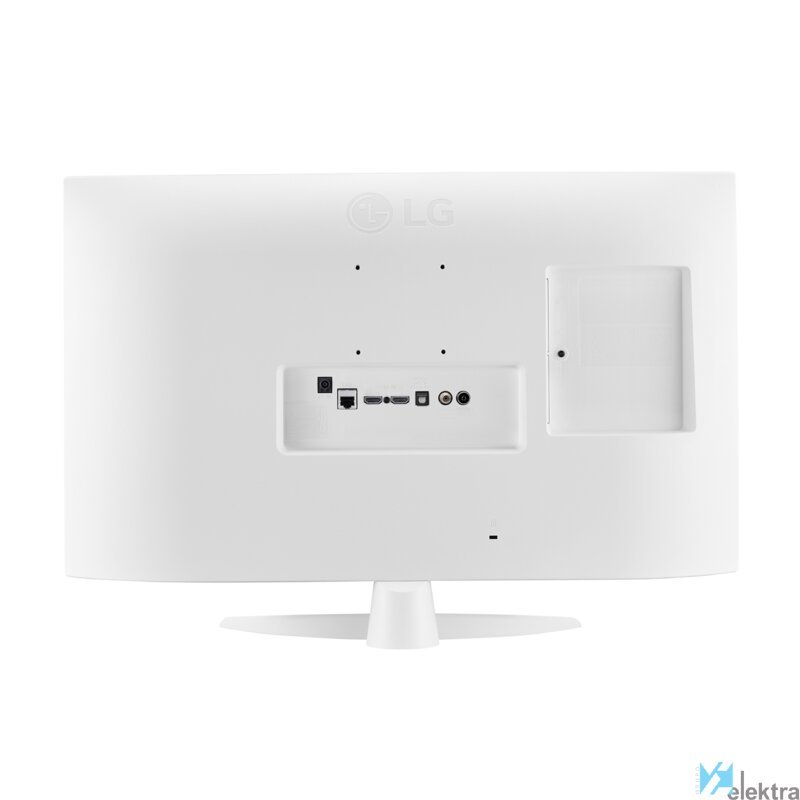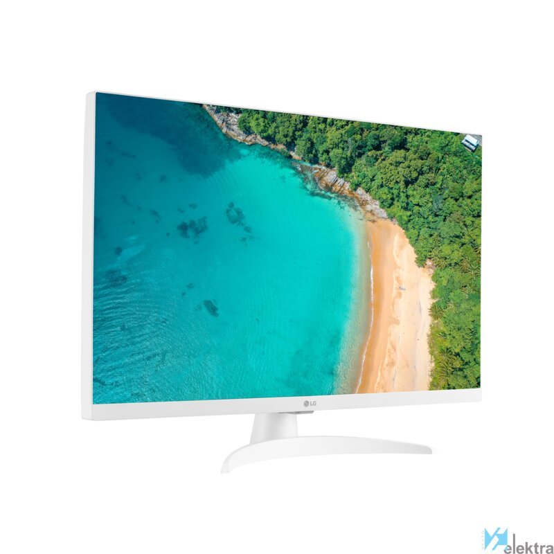 LG 27TQ615S-WZ. Diagonal de la pantalla: 68,6 cm (27"), Resolución de la pantalla: 1920 x 1080 Pixeles, Tipo HD: Full HD, Tecnología de visualización: LED, Forma de la pantalla: Plana. Smart TV. Brillo de pantalla: 250 cd / m², Tiempo de respuesta: 14 ms, Razón de contraste (típica): 1000:1, Relación de aspecto nativa: 16:9. Formato de señal digital: DVB-C, DVB-S, DVB-S2, DVB-T, DVB-T2. Wifi, Ethernet. Color del producto: Blanco