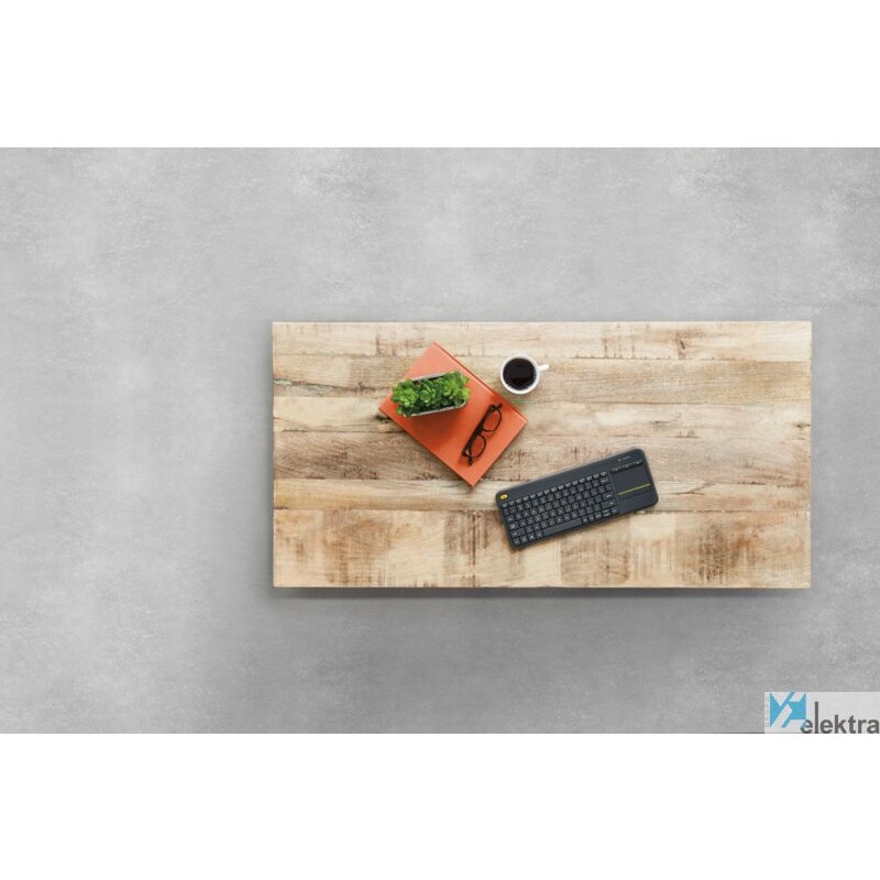 Logitech K400 Plus. Formato del teclado: Mini. Estilo de teclado: Derecho. Tecnología de conectividad: Inalámbrico, Interfaz del dispositivo: RF inalámbrico, Diseño de teclado: QWERTY, Uso recomendado: Hogar. Color del producto: Negro