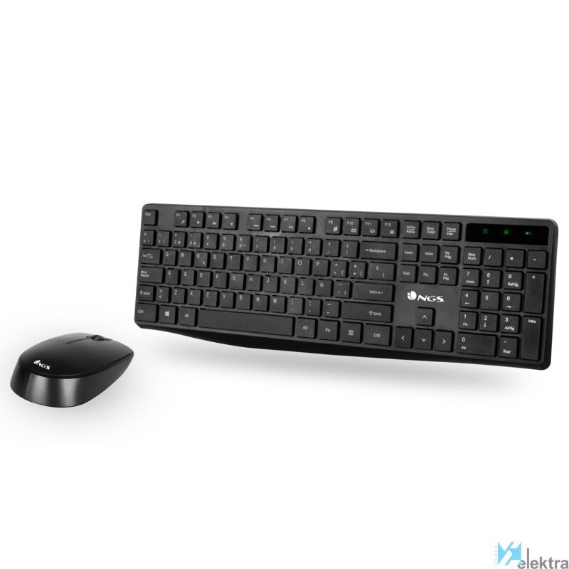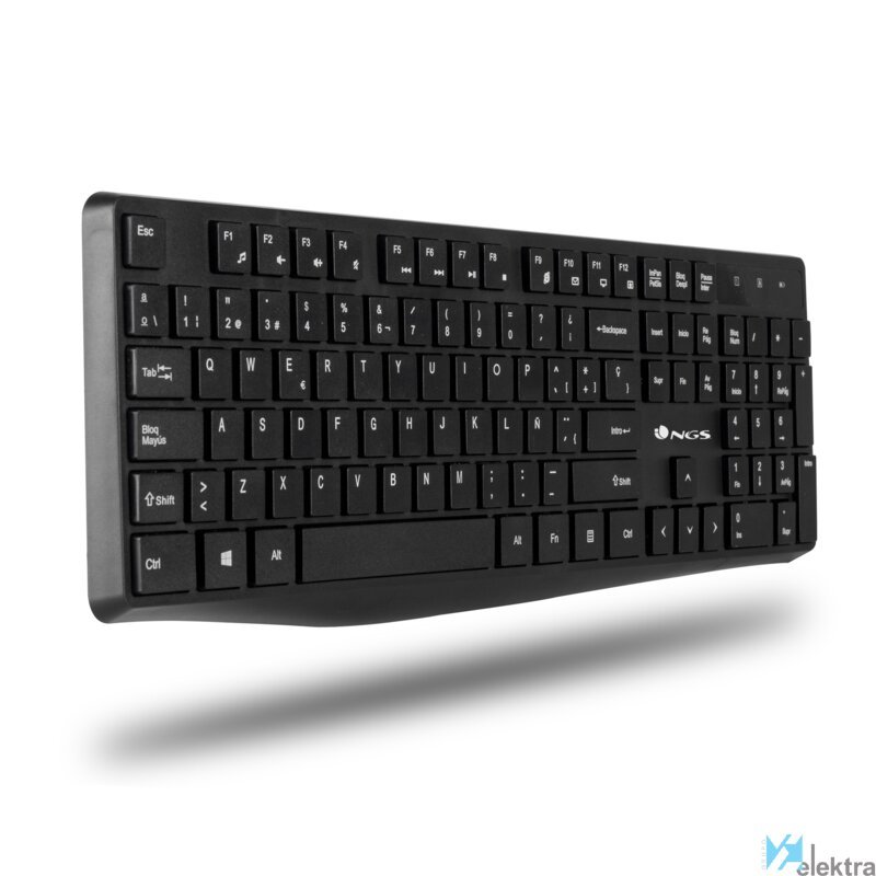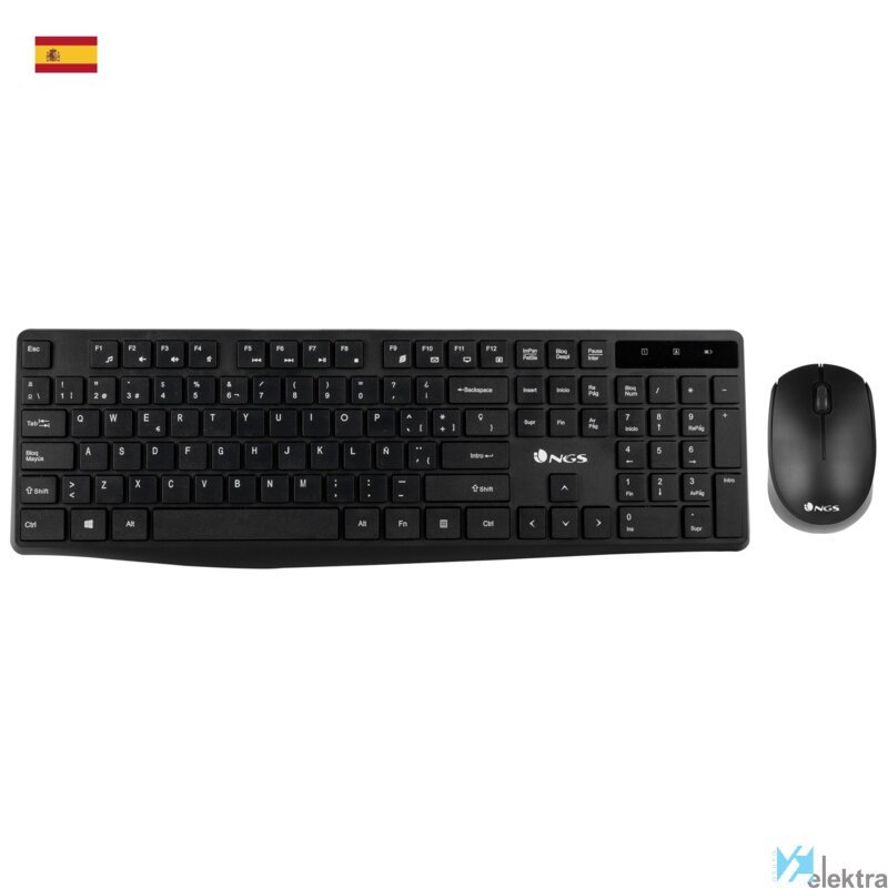 NGS Allure Kit (Español), QWERTY. Formato del teclado: Completo (100%). Estilo de teclado: Derecho. Tecnología de conectividad: Inalámbrico, Interfaz del dispositivo: RF inalámbrico, Diseño de teclado: QWERTY, Uso recomendado: Universal. Color del producto: Negro. Ratón incluido