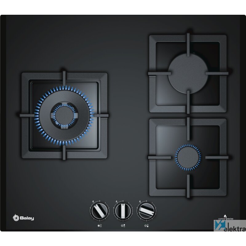 Placa de gas Balay de 60 cm de ancho Cristal templado negro de alta resistencia 3ETG663HNRecipiente :