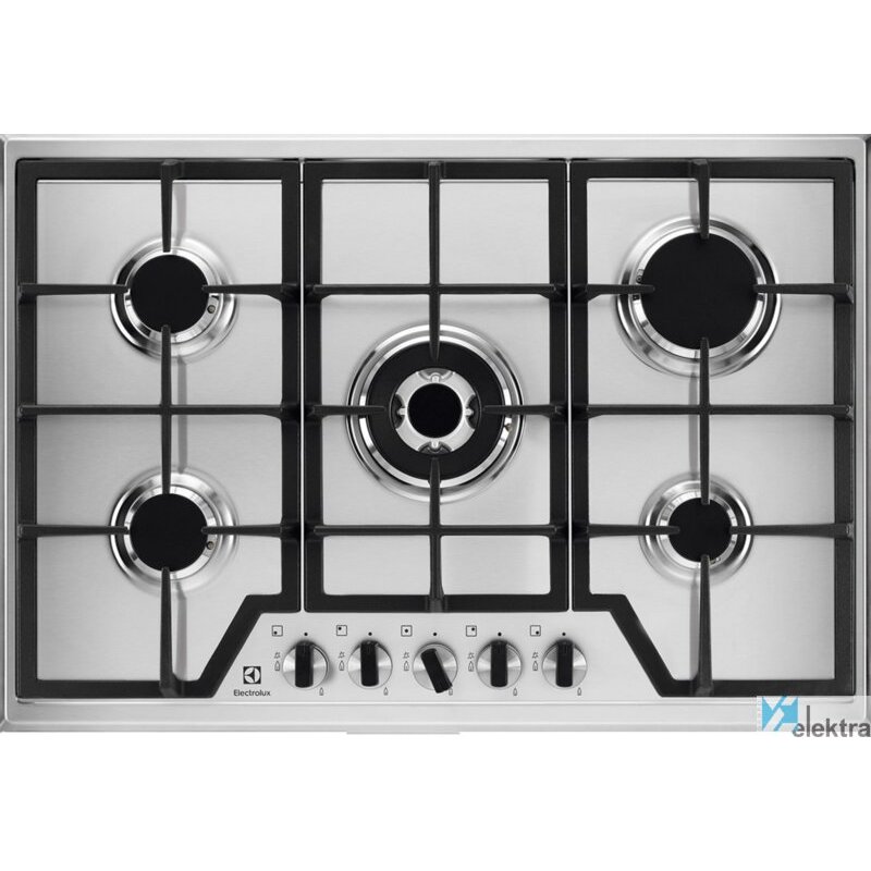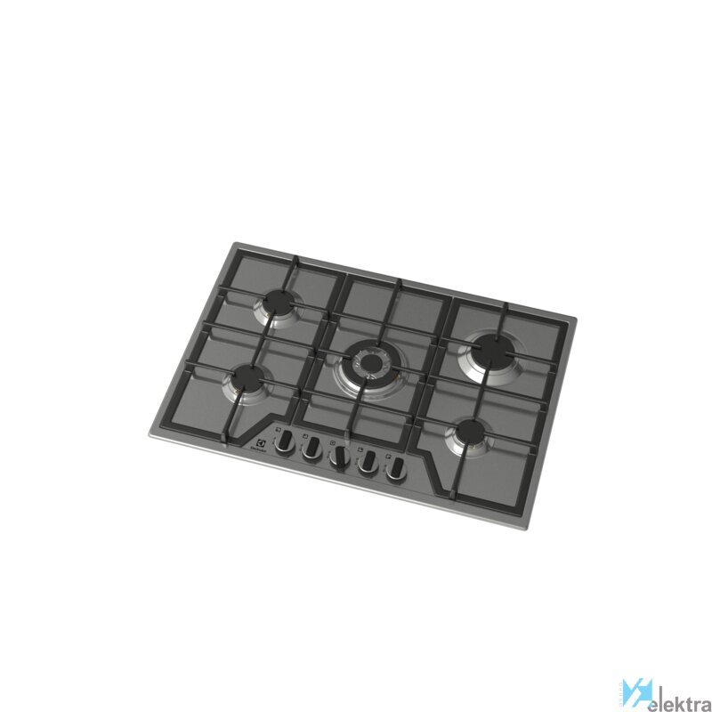 Electrolux KGS7536X. Color del producto: Acero inoxidable, Tipo de instalación: Integrado, Anchura de los quemadores: 75 cm. Tipo de control: Giratorio, Control de posición: Frente. Carga conectada (gas): 11800 W, Voltaje de entrada AC: 220-240 V, Frecuencia de entrada AC: 50 - 60 Hz. Ancho: 744 mm, Profundidad: 510 mm, Altura: 40 mm. Ancho del paquete: 880 mm, Profundidad del paquete: 620 mm, ...Recipiente :