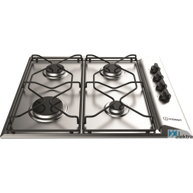Indesit PAAI 642 IX/I WE. Color del producto: Acero inoxidable, Tipo de instalación: Integrado, Tipo de quemador: Encimera de gas. Zona de cocción a fuego lento: 1000 W, Zona de cocción media: 1650 W, Zona de cocción grande: 3000 W. Tipo de control: Giratorio, Control de posición: Arriba a la derecha. Carga conectada (eléctrica): 0,6 W, Voltaje de entrada AC: 220-240 V, Frecuencia de entrada AC: 50 - 60 Hz. Ancho: 580 mm, Profundidad: 510 mm, Altura: 33 mm