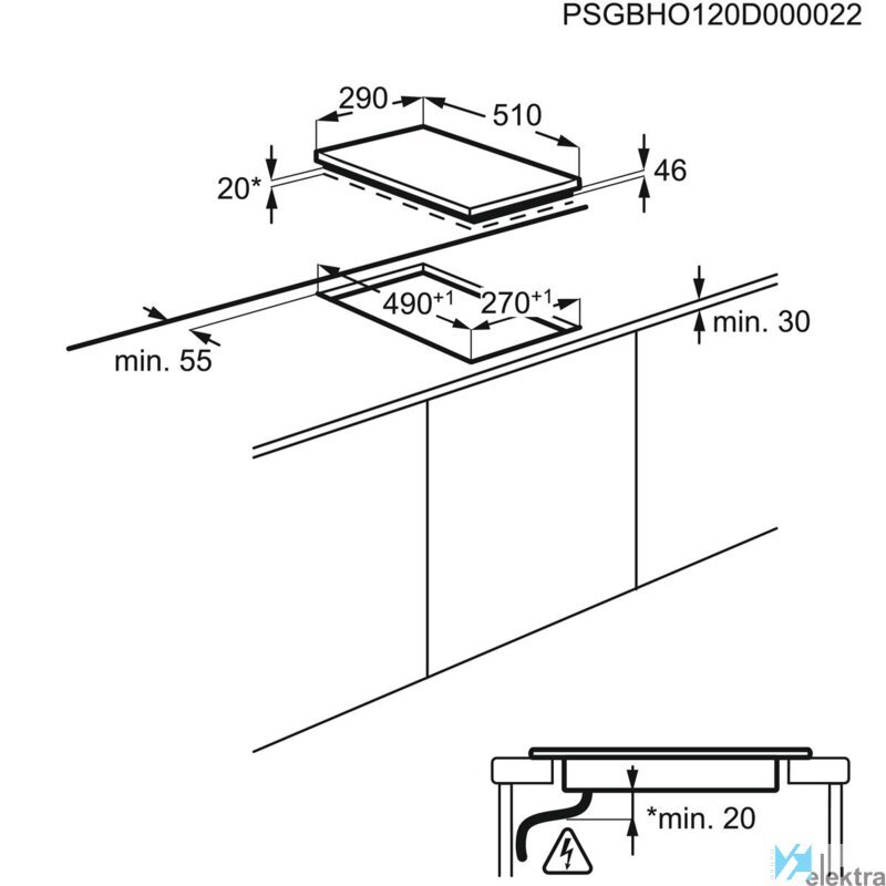 | Fondo del hueco | 490 mm |
