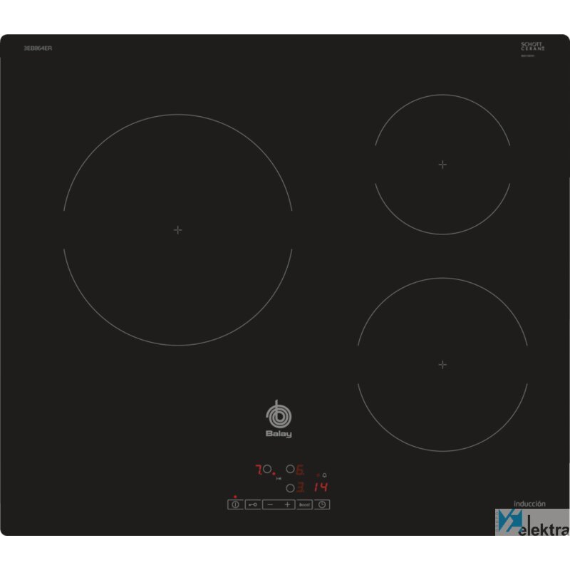 Placa de inducción Balay de 60 cm de ancho Terminación cristal 3EB864ERRecipiente :