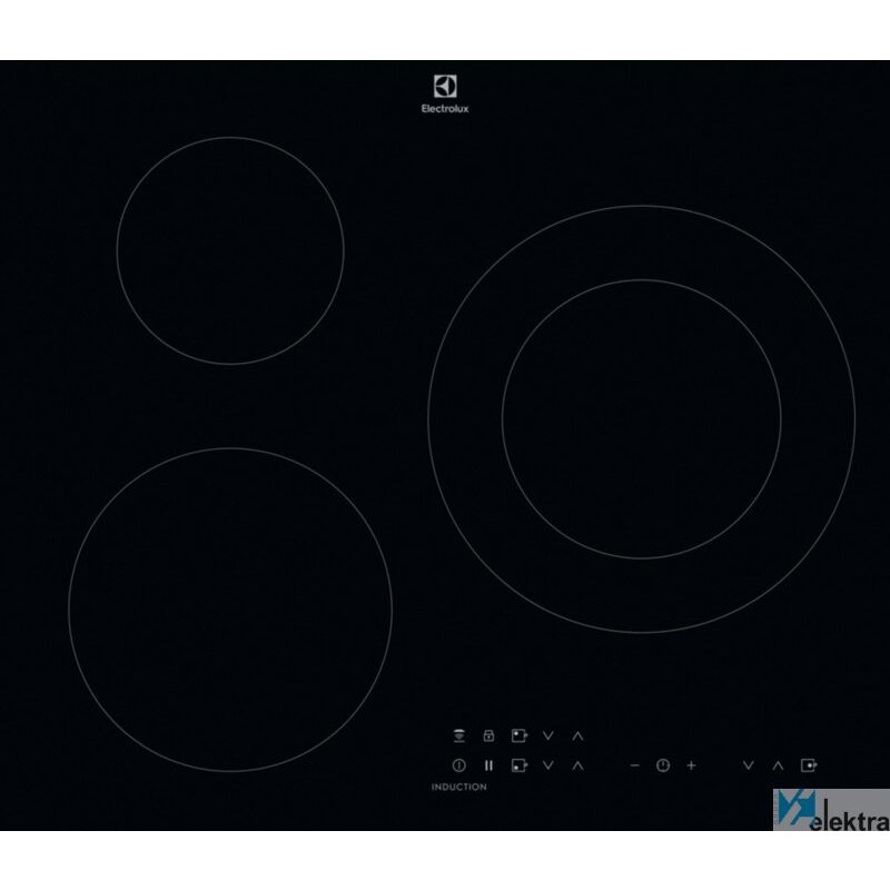 Electrolux EIT60336CK. Color del producto: Negro, Tipo de instalación: Integrado, Tipo de quemador: Con placa de inducción. Tipo de control: Tocar, Control de posición: Parte superior delantera, Tipo de temporizador: Digital. Carga conectada (eléctrica): 7350 W, Voltaje de entrada AC: 220-240/400 V, Frecuencia de entrada AC: 50 - 60 Hz. Ancho: 590 mm, Profundidad: 520 mm, Altura: 44 mmRecipiente :