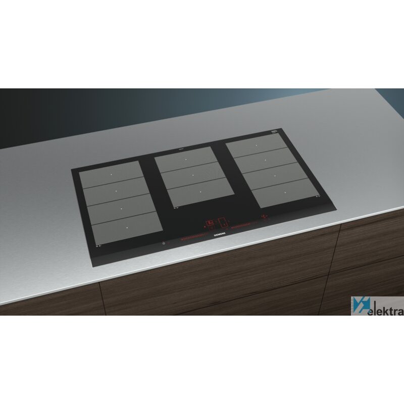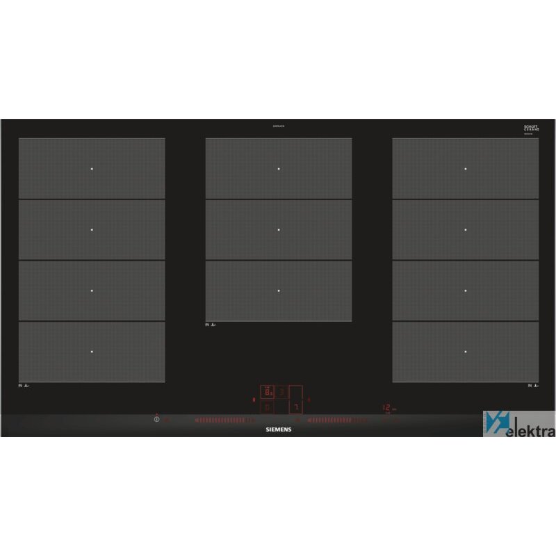 Siemens EX975LXC1E. Color del producto: Negro, Acero inoxidable, Tipo de instalación: Integrado, Tipo de quemador: Con placa de inducción. Tipo de control: Tocar, Control de posición: Frente, Indicadores LED: Poder. Carga conectada (eléctrica): 11100 W, Voltaje de entrada AC: 220-240 V, Frecuencia de entrada AC: 50 - 60 Hz. Ancho: 912 mm, Profundidad: 51 mm, Altura: 520 mm