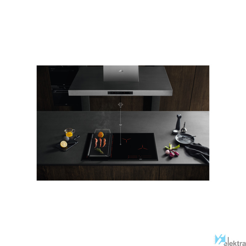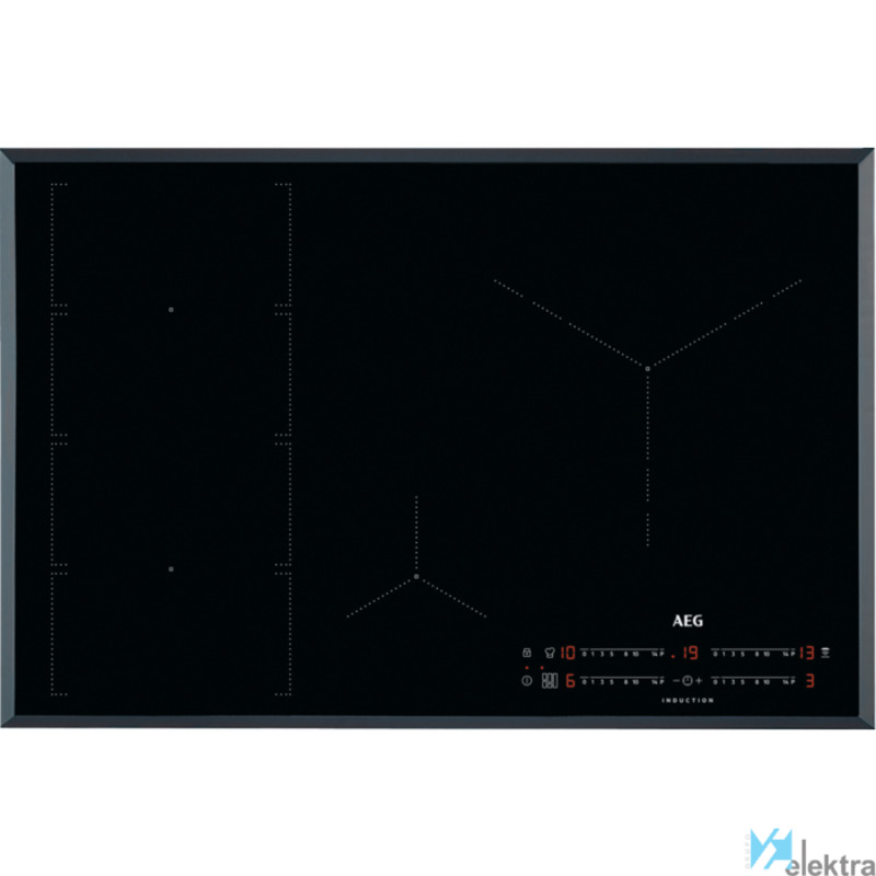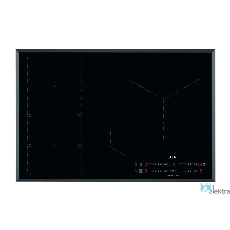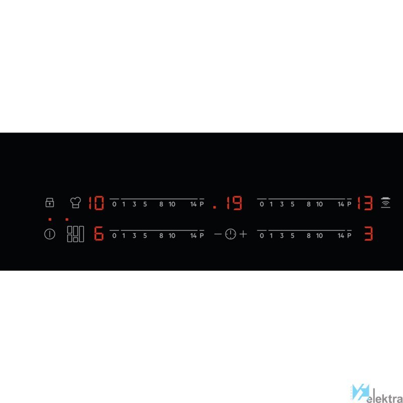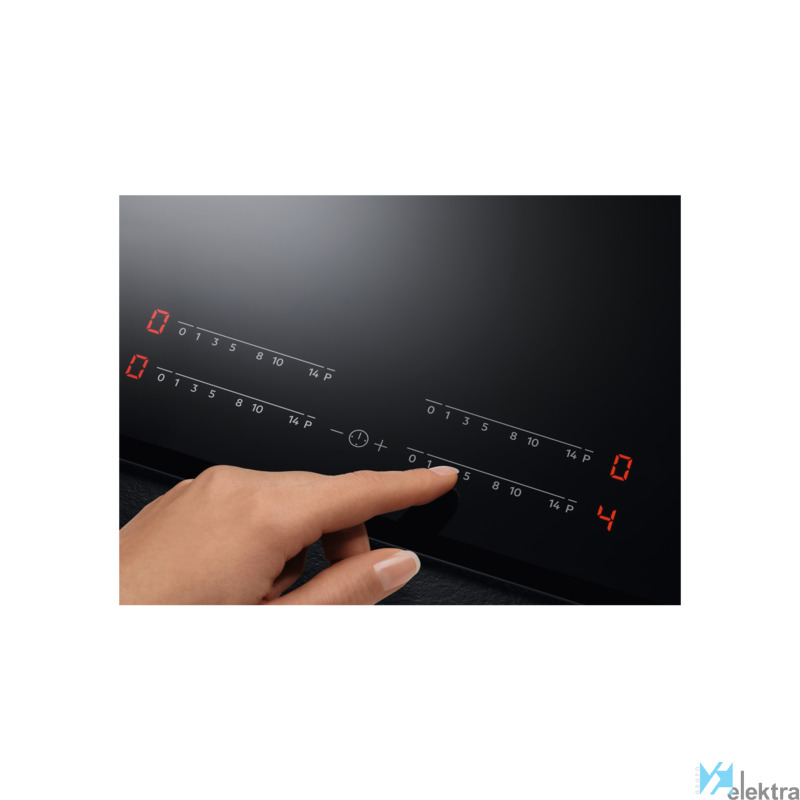 Placa de inducción flexible de 80 cm biselada extraplana de 4 zonas, una de ellas de 32 cm, controles táctiles deslizantes, función FlexiPuente multizona con ajuste PowerSlide de temperatura