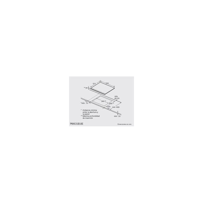 Placa vitrocerámica Bosch 60 cm de ancho terminación bisel delantero PKK631B18ERecipiente :